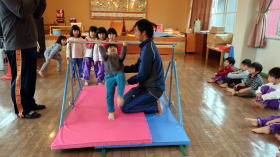 10日は、スポーツ教室がありました。年少組さんは走ったり、うさぎの様にジャンプをしたりしながら移動する運動遊びをしました。年中・年長組さんは、縄跳びを教わり、練習しました。
