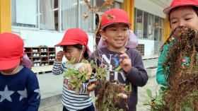 31日に、年長さんが道の駅風和里の畑で芋掘りをさせてもらいました。大きいお芋をみんなで協力して掘り上げていました。