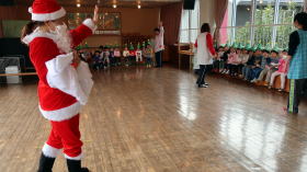 12日に、サンタクロースさんが来てくれました。みんなで輪になって、サンタさんと一緒に踊った後、プレゼントをいただきました。